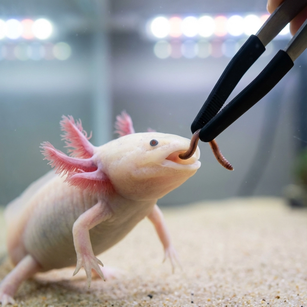 Overfeeding creates water quality problems and obesity issues. Axolotls consume food opportunistically and cannot regulate intake naturally. Monitor body condition and adjust feeding accordingly.