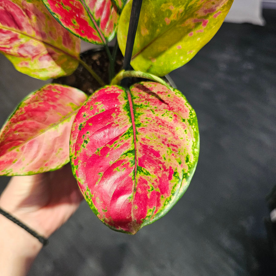 The Aglaonema Heng Heng is an exotic plant known for its striking, vibrant foliage. This rare houseplant, scientifically classified as Aglaonema sp., features large, glossy leaves with a captivating mix of deep green, light green and pinkhues. The plant’s variegation creates a soft, almost marble-like effect across each leaf, with varying shades of green and pink that give it an elegant, textured look. Native to the tropical regions of Southeast Asia, particularly Thailand, the